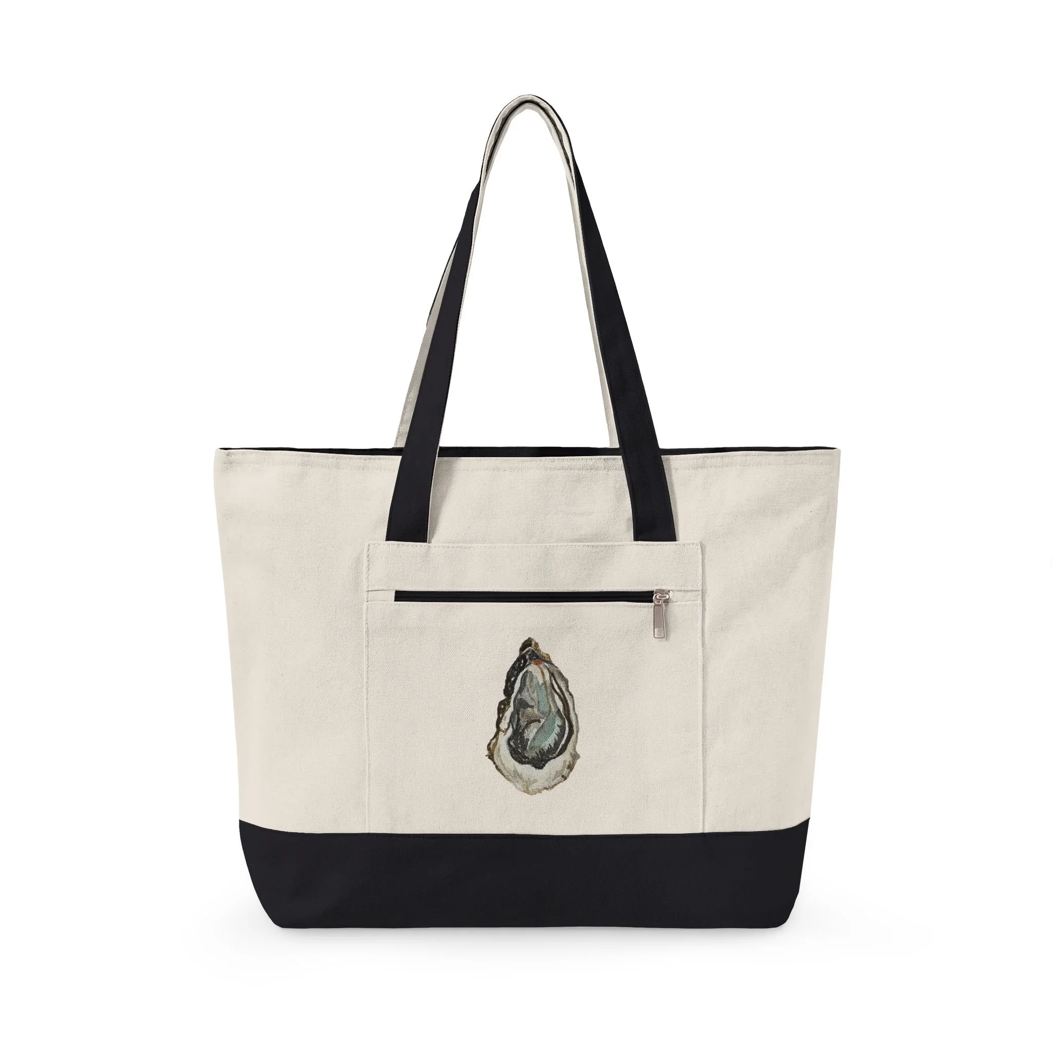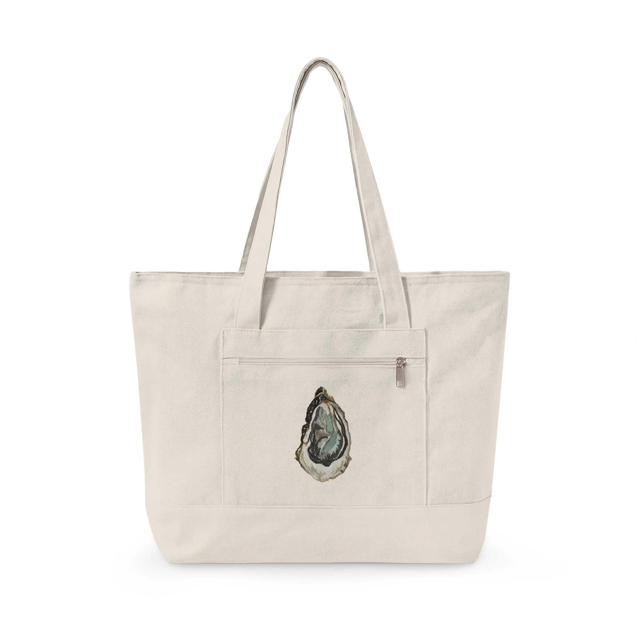 A dozen on the halfshell, an ice cold beverage, and this bag. This roomy canvas tote carries more than belongings — it carries a sense of calm and a seaside memory. Built from sturdy 12 oz. cotton, the bag opens to a zippered main compartment that keeps books, a sweater, or market finds secure. A front zip pocket keeps small items reachable. The printed lighthouse artwork adds a weathered, painterly note, while the neutral canvas blends into everyday life. Sling it over your shoulder for a morning trip to the farmers’ market, a slow walk along the harbor, or a laid-back weekend errand run.